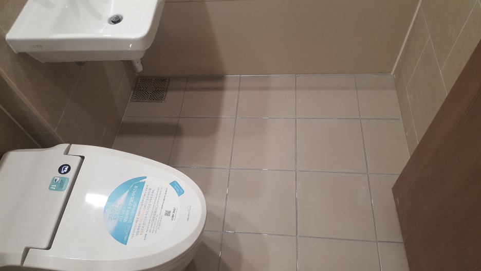 아파트 거실 공용화장실 입니다 서울 흑석동 아크로리버하임 화장실 줄눈시공 완성된 모습입니다. 화장실 줄눈시공 색상은 실버 입니다. 아파트 안방화장실 입니다