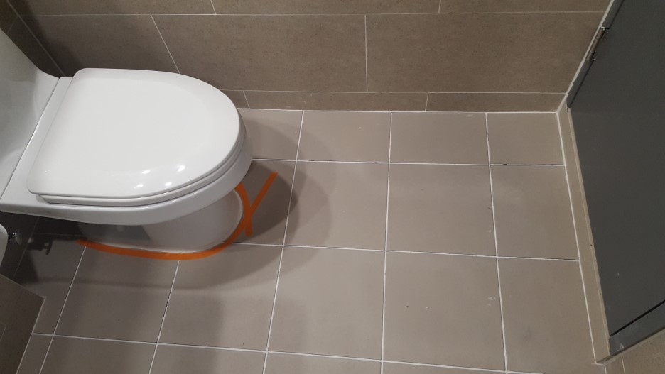 서울 흑석동 아크로리버하임 안방 화장실 변기테두리 줄눈시공 하기전의 모습입니다.