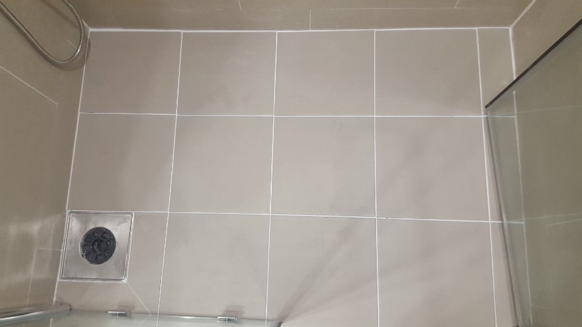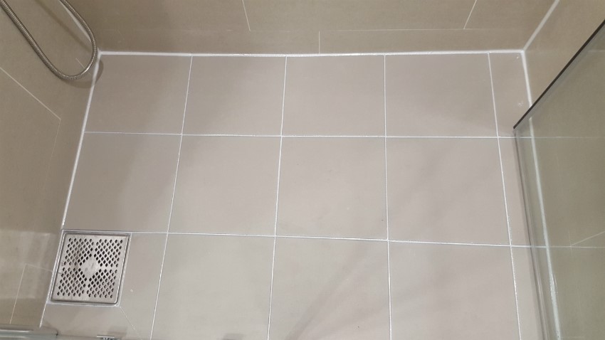 안방화장실 샤워부스 테두리 줄눈시공 완성된 모습니다.