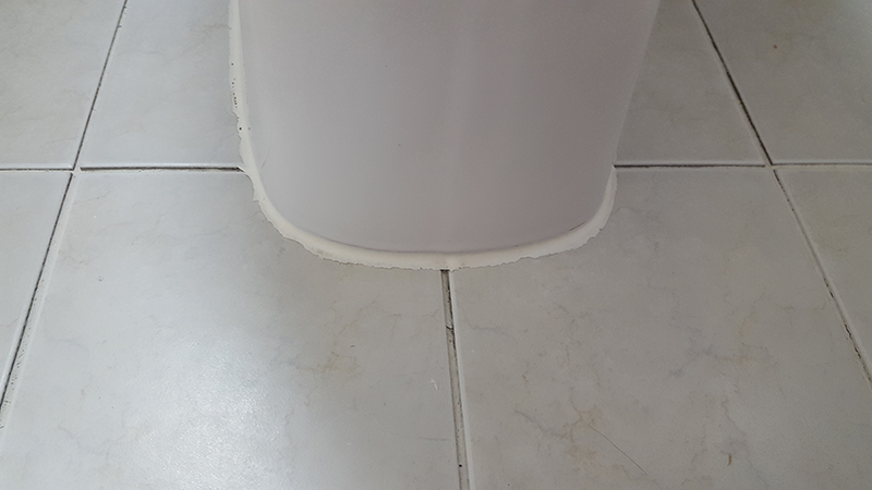 변기 테두리 줄눈시공 하기전 사진입니다. 변기 테두리는 실리콘으로 마감되어 있습니다