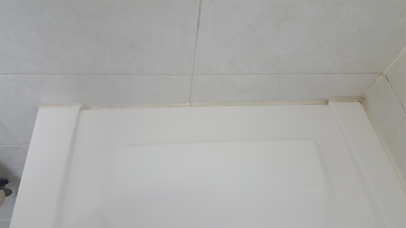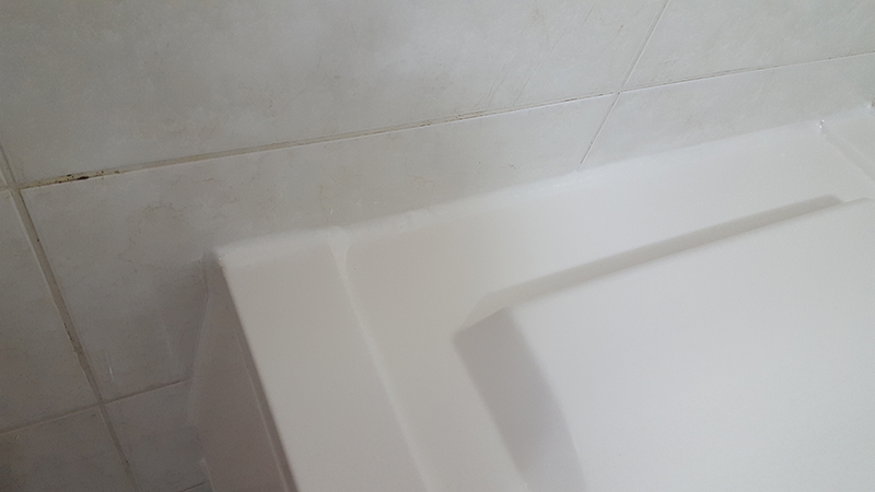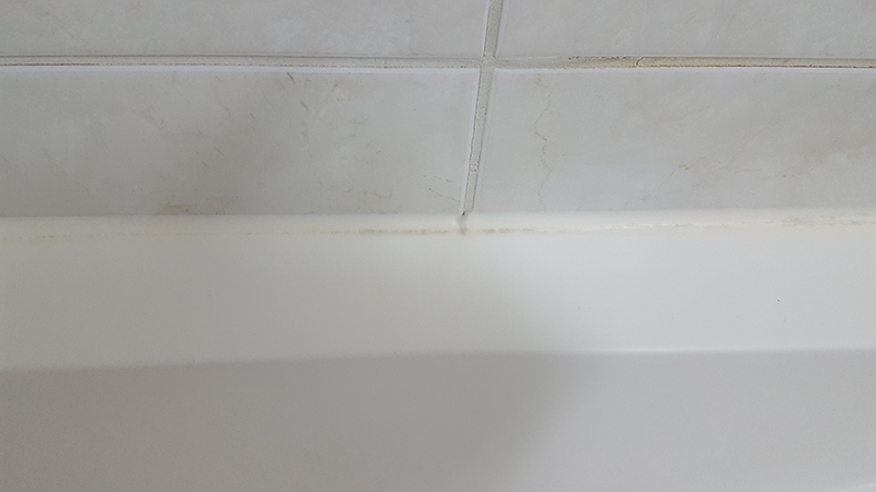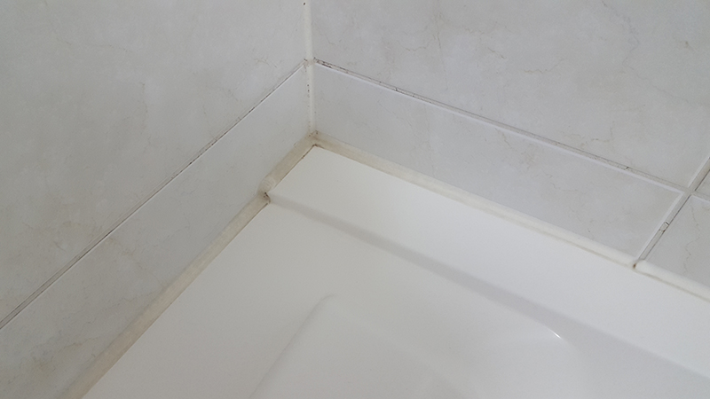 욕조 테두리 실리콘 줄눈시공 하기전 사진 입니다. 실리콘이 많이 오염되어 있습니다.