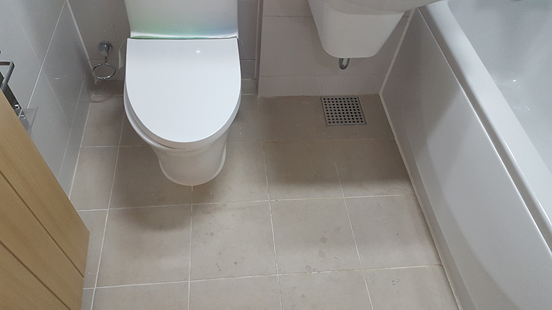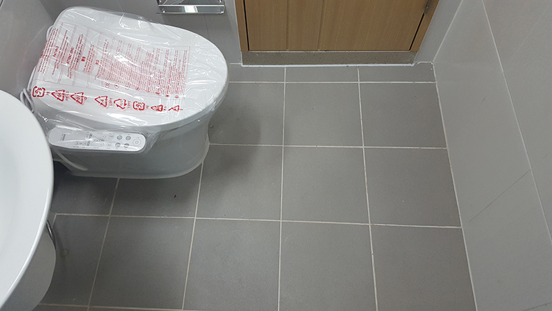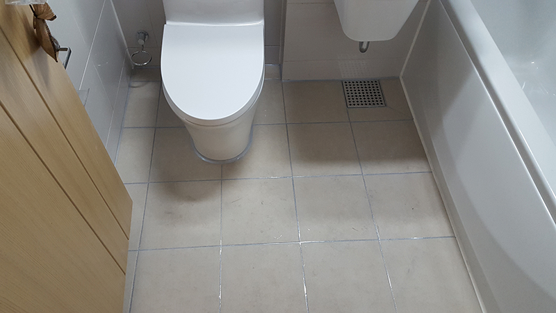 욕조있는 공용화장실 줄눈시공 완성된 사진입니다.