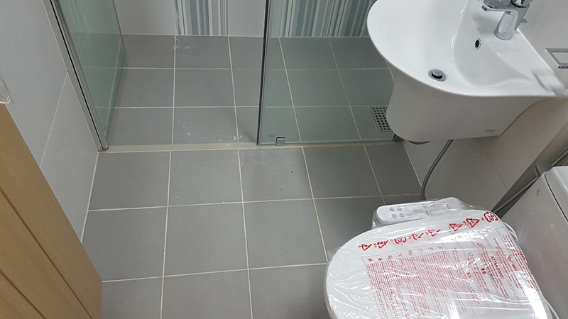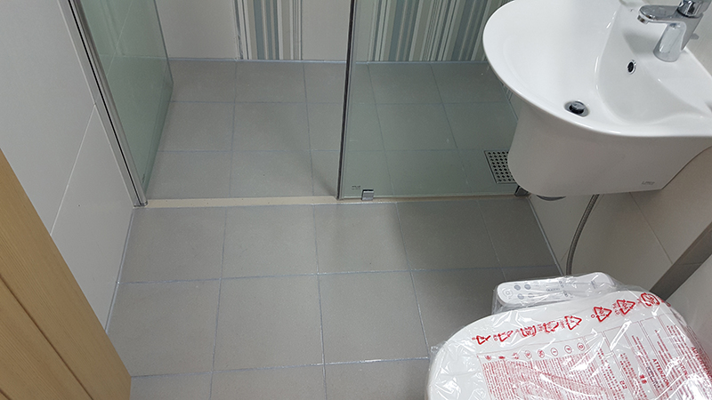 안방 화장실 줄눈시공 완성된 사진 입니다. 줄눈시공 색상은 루나실버로 진행하였습니다.