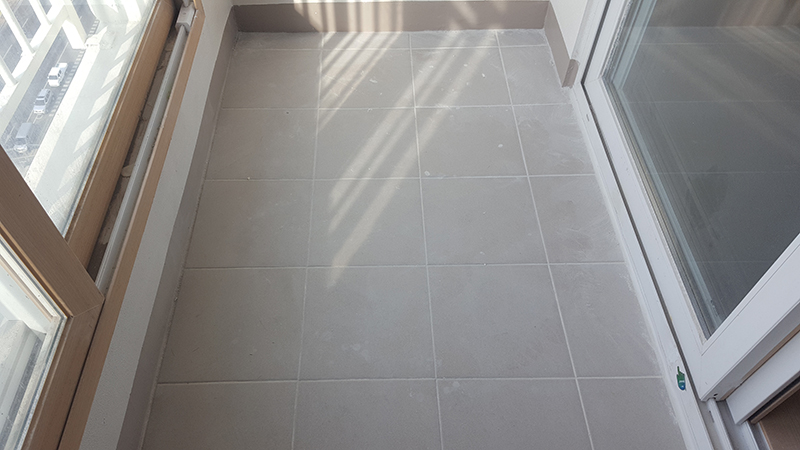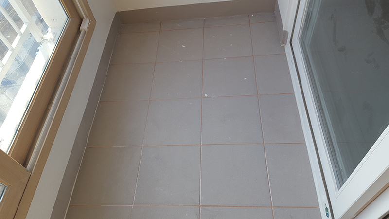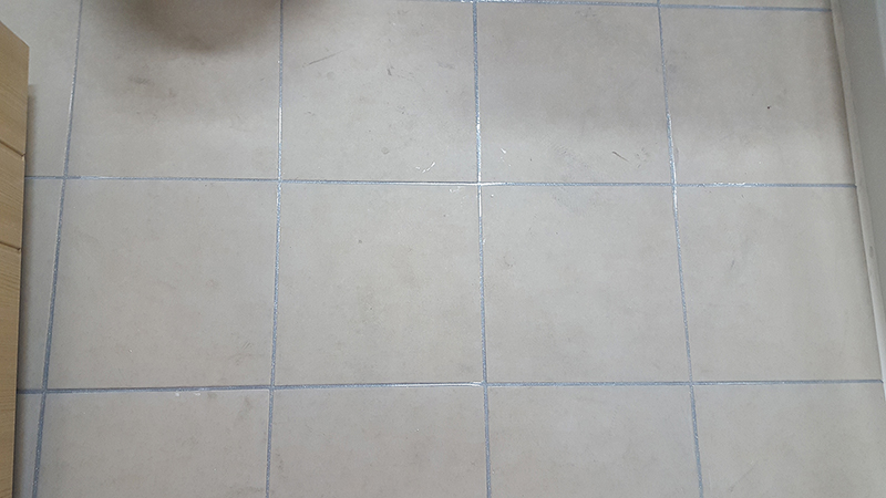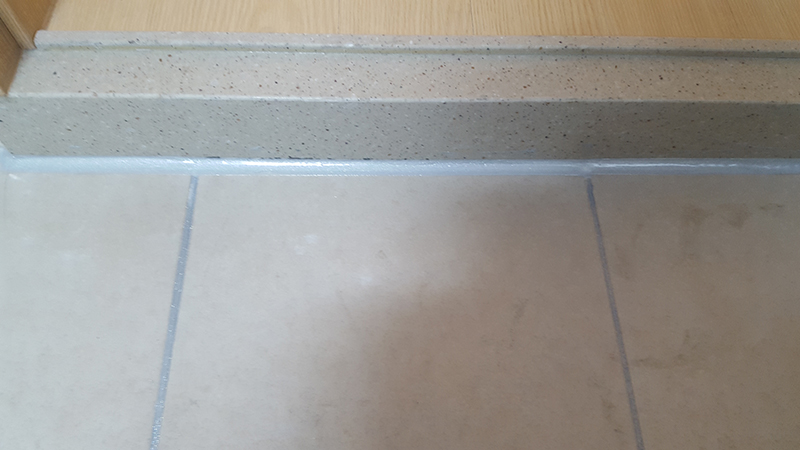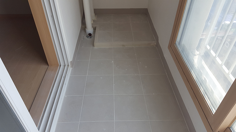 안방 베란다 세탁실 줄눈시공 완성된 사진 입니다. 줄눈시공 색상은 루나 브라운 입니다.
