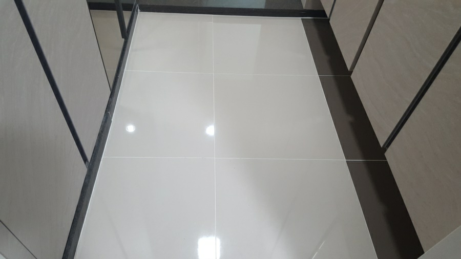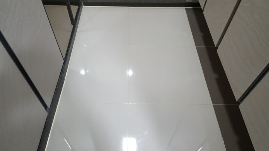 현관 폴리싱타일 줄눈시공 하기전 사진입니다.
