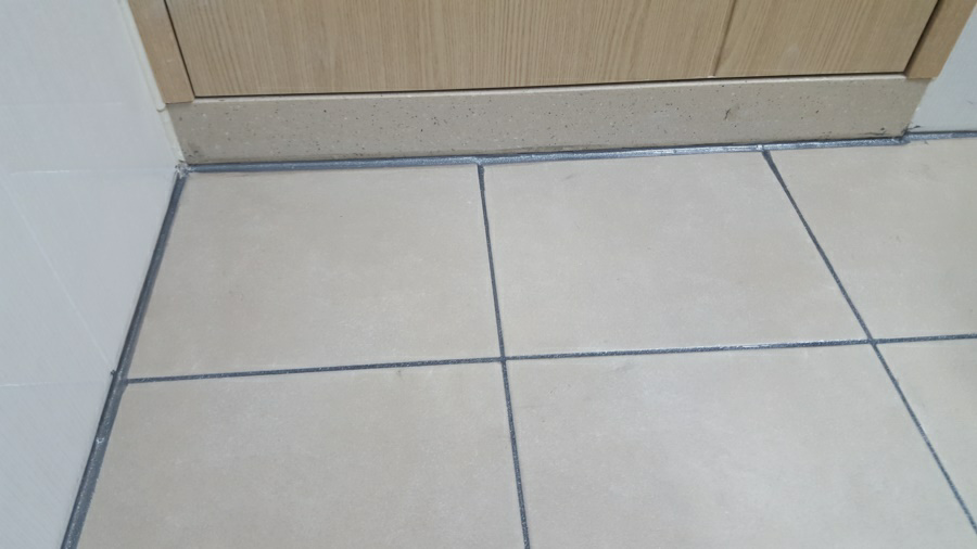 역시나 세탁기 물 배출로 인해 물 때 끼기 쉬운 세탁실 줄눈도 다크그레이로 시공해드렸어요~ 세탁실 타일줄눈시공 후 고급스러운 인테리어 효과를 보실 수 있는 색상이지요~