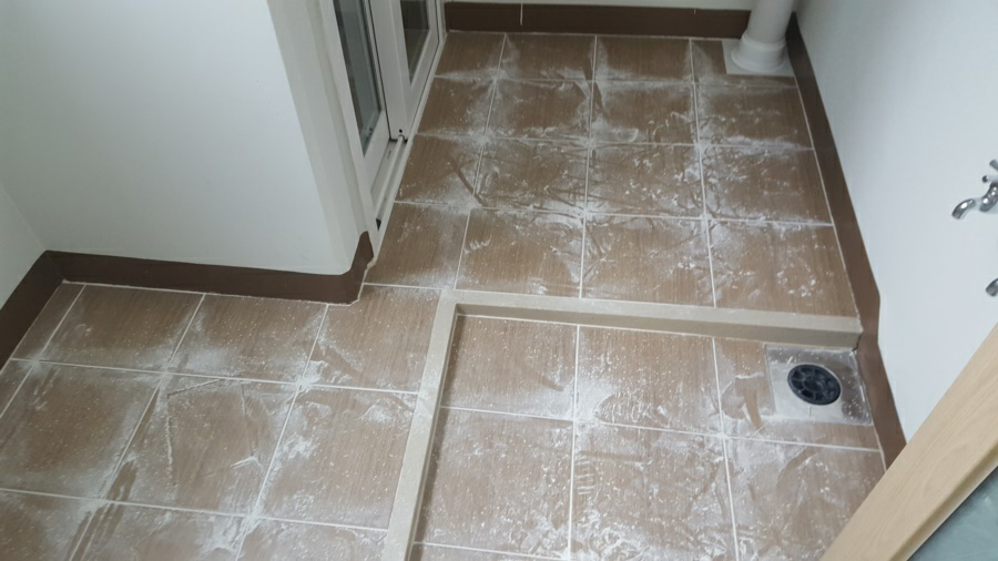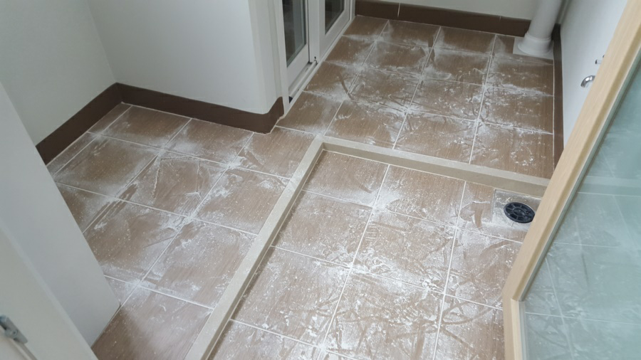 세탁실의 타일줄눈시공 전에 백시멘트를 꼼꼼하게 제거중인 모습입니다. 타일엔줄눈에서는 항상 이런 기초작업에도 정성을 들여 꼼꼼하게 작업하기 때문에 작업 후 고객님 들의 만족도가 높지요~