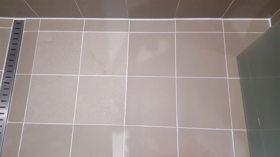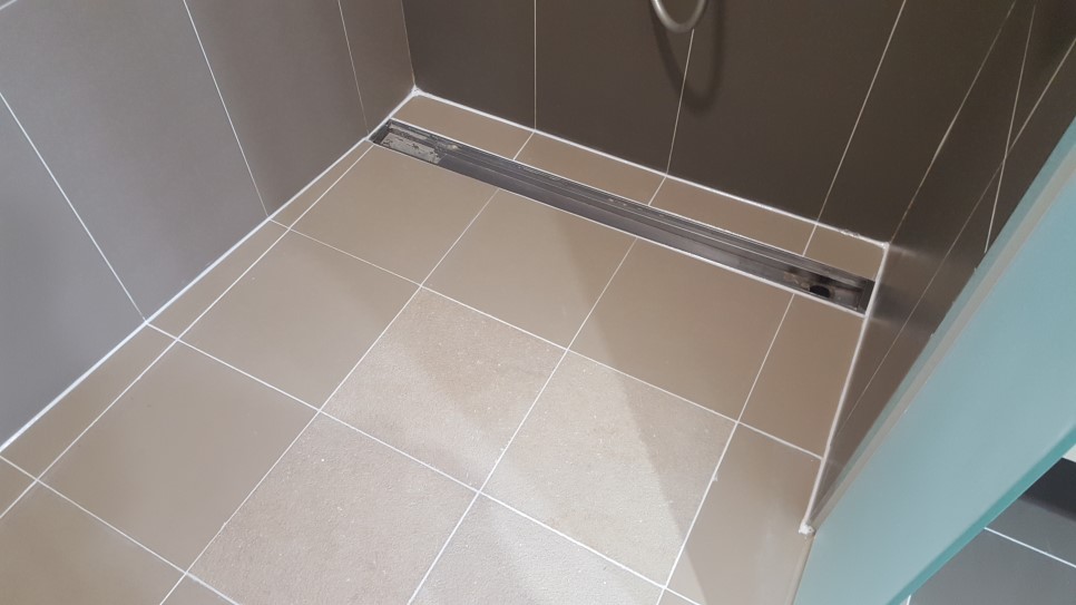 서울 건국대학교병원 VIP병동 화장실 욕실 샤워부스 타일 줄눈시공 완성된 모습입니다.