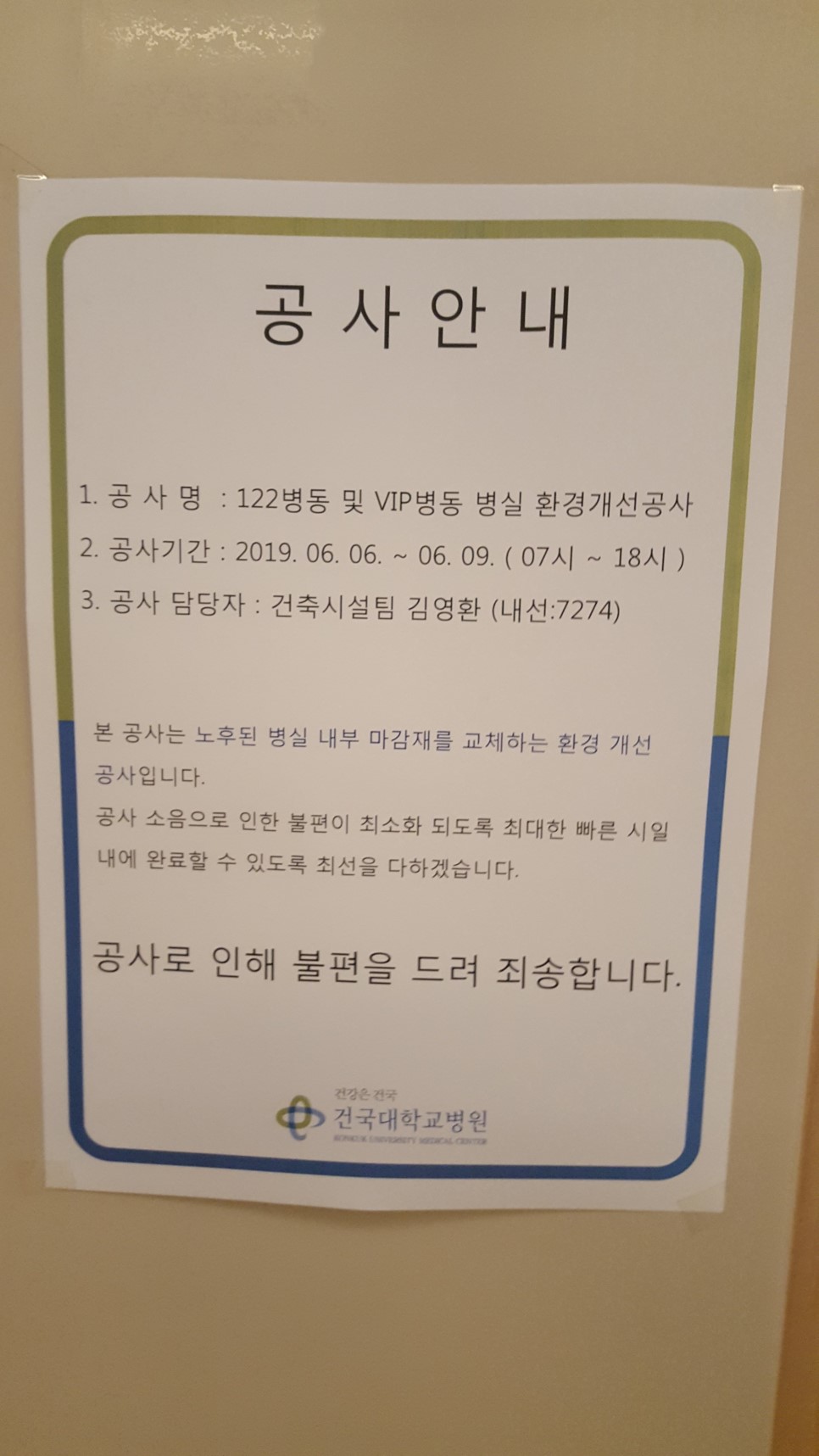 오늘의 시공장소인 서울 광진구 건대역에 위치한 건국대학교병원 입니다. 건국대학교병원이 20년 되었다고 하네요... 그동안 리모델링 했는지는 모르지만 이번에는 VIP병동을 리모델링 하면서 특실 화장실 줄눈시공까지 하게되었답니다.