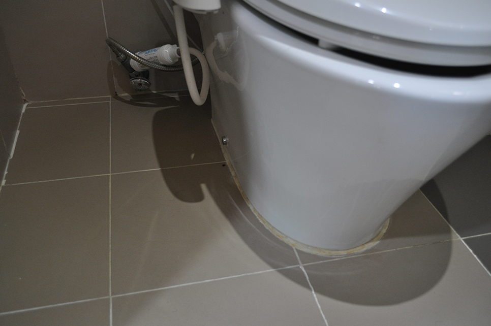 화장실 변기테두리 줄눈시공전에 오염된 모습 입니다.