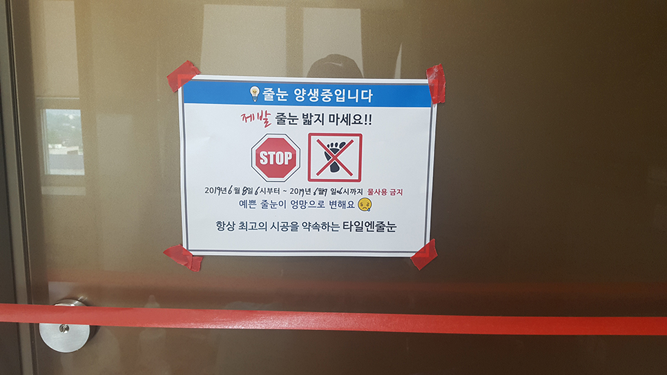 혹시나 시공이 잘 못 되지않도록 시공후에 미리 안내 게시물을 붙여놨습니다^^