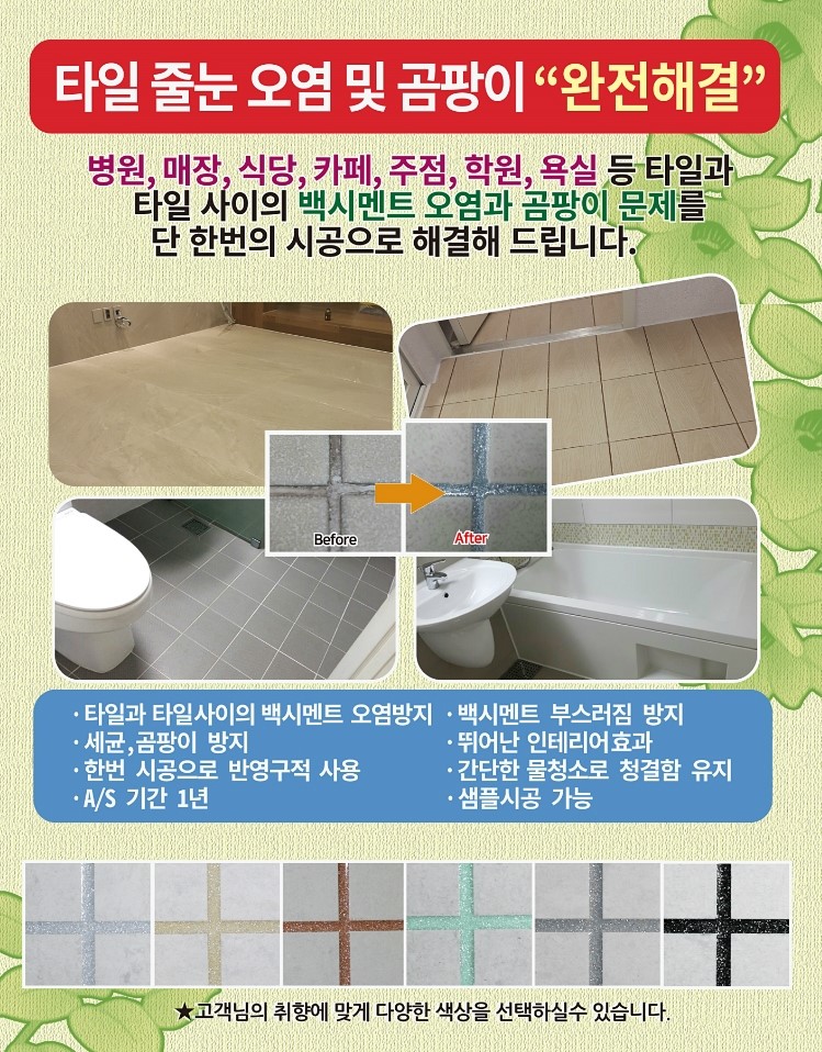 줄눈시공 및 오염줄눈 제거를 포함해 재시공 복원까지?! 원스톱으로 신속하고 정확하게! 현관은 물론 거실, 베란다, 화장실까지 부위 상관없이 어디든 가능합니다!